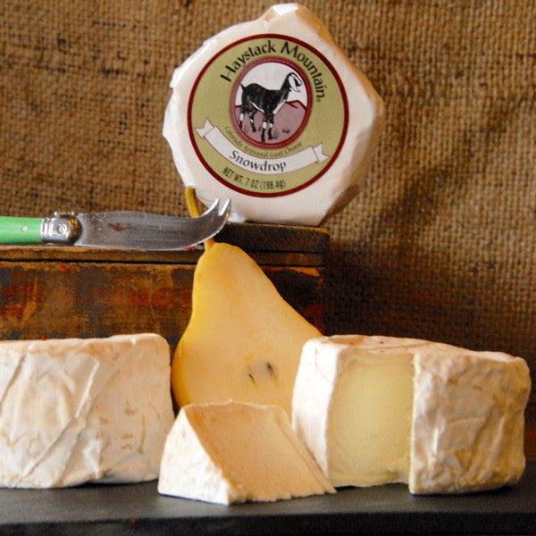 Snowdrop ranges from oozy and satiny to creamy beneath its thin rind, depending upon the degree of ripeness. Redolent of grass and wild flowers, it finishes with a mild, lactic tang. Like all surface-ripened cheeses, Snowdrop ages from the outward in. The curds are hand-ladled into cheese forms. When young, Snowdrop has an appealing firmness and clean, tangy flavor. As it approaches peak ripeness, the layer under the rind grows creamy; optimum ripeness is at five weeks, when the interior has a satiny, oozy paste that's luxurious on the palate. The best indicator of ripeness is touch; it should feel like a water balloon to the touch while still wrapped. This is a stunning cheese served starters with just a baguette or crackers, or as part of a composed cheese plate. 7 oz. round.